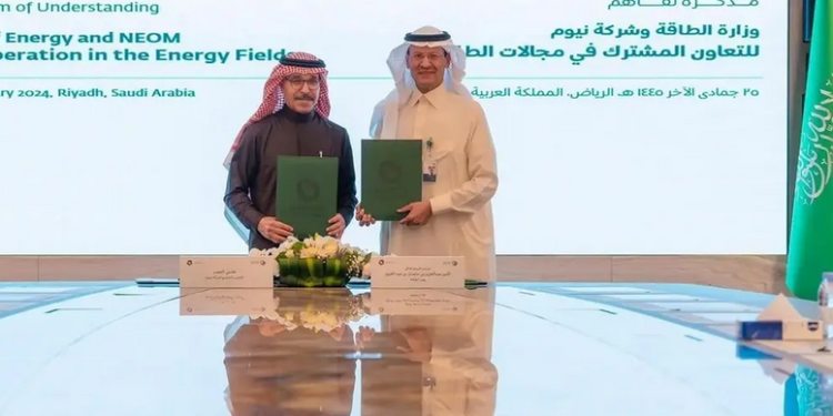 وقّع الأمير عبدالعزيز بن سلمان بن عبدالعزيز وزير الطاقة، في الرياض اليوم الأحد، مذكرة تفاهم مع الرئيس التنفيذي لشركة نيوم المهندس نظمي النصر؛ تهدف إلى تعزيز التعاون بين الجانبين في مجالات الطاقة.