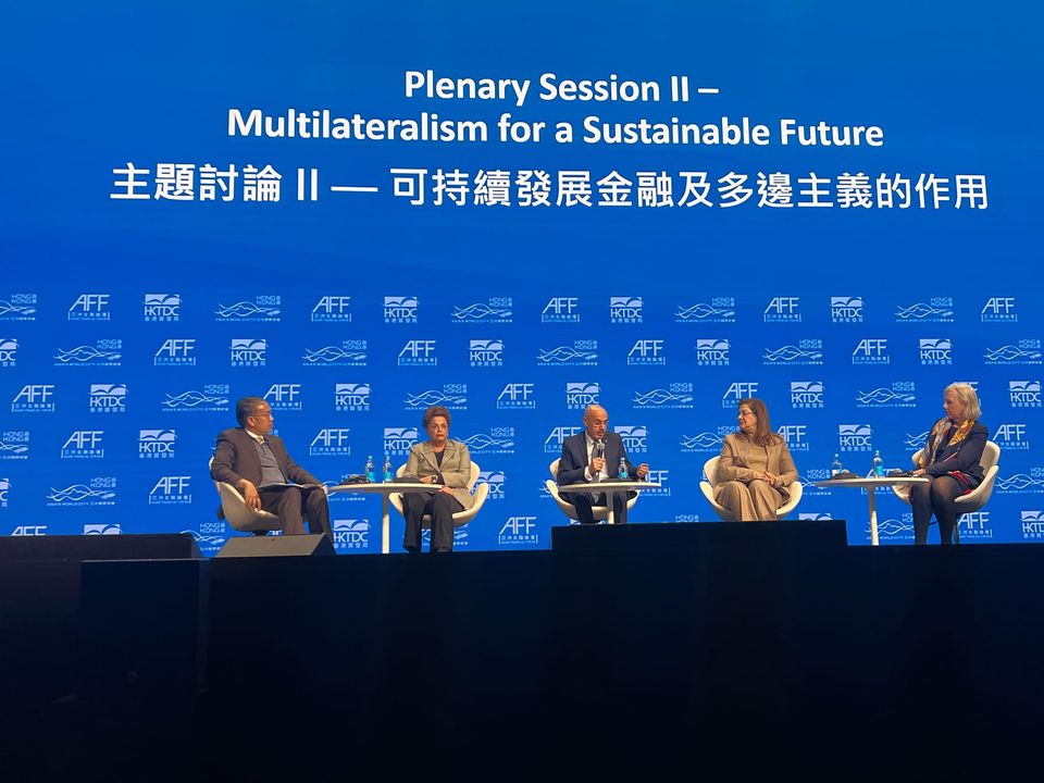 وجاءت الجلسة بعنوان “التعددية من أجل مستقبل مستدام والتي تناقش أهمية التعاون متعدد الأطراف، وكيفية تسخير قوته لتحقيق التنمية المستدامة، وتأتي بمشاركة د. محمد سليمان الجاسر رئيس البنك الإسلامي للتنمية، د. ألكسندرا جور شرودر نائب المدير العام بالمديرية العامة للاستقرار المالي واتحاد الخدمات المالية وأسواق رأس المال بالمفوضية الأوروبية، ديلما روسيف رئيس بنك التنمية الجديد التابع لمجموعة بريكس، ويدير الجلسة كريستوفر هوي وزير الخدمات المالية والخزانة بهونج كونج.