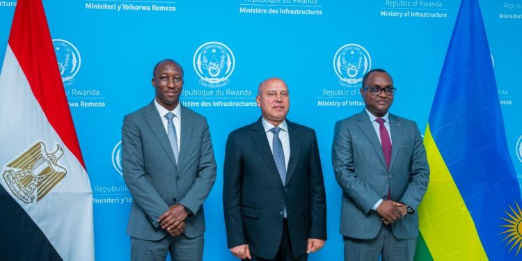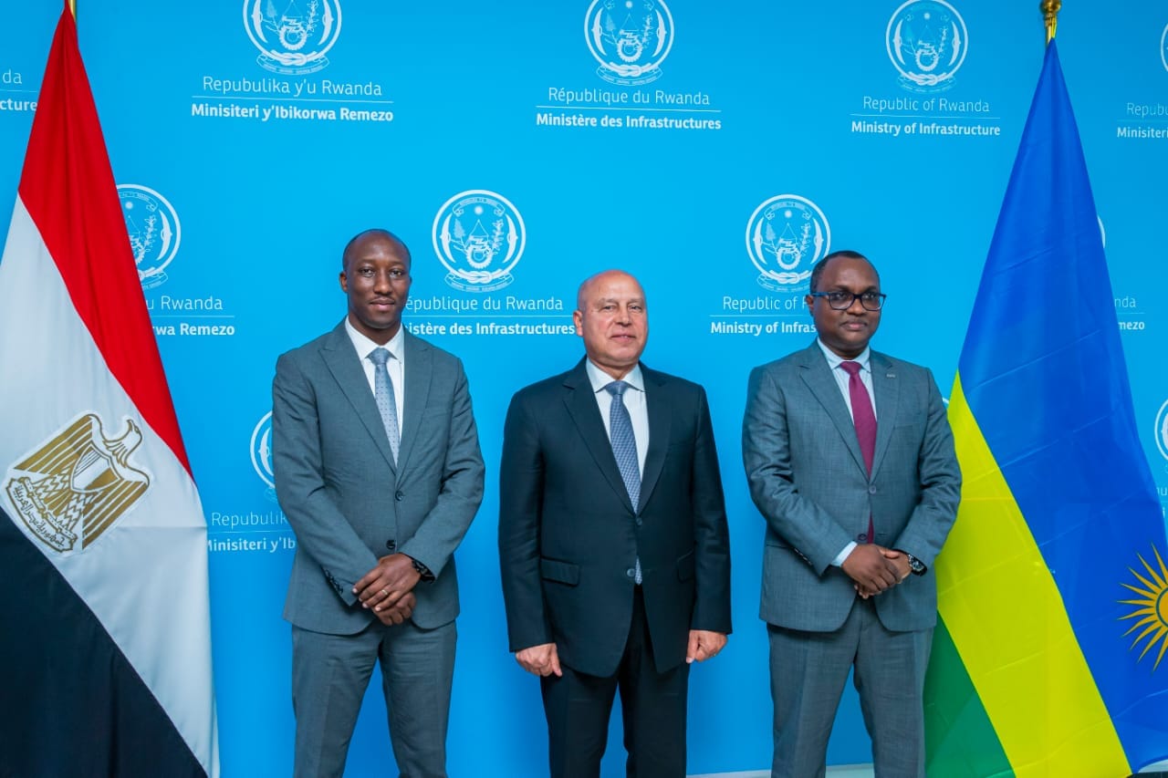 بحث كامل الوزير، وزير النقل، مع جيمي جاسوري وزير البنية التحتية، وجان كريسوستوم وزير التجارة والصناعة بجمهورية رواندا، تدعيم التعاون المشترك في مجالات النقل المختلفة.