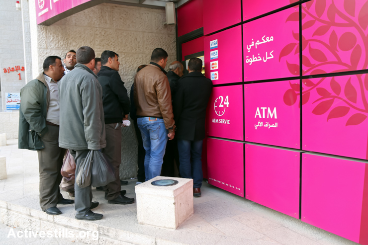 فلسطينيون يحتشدون أمام ماكينة صراف آلي