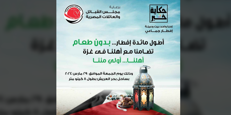 أعلن مجلس القبائل والعائلات المصرية، عن تنظيم أطول مائدة إفطار بدون طعام، بطول 8 كيلومترات على شاطئ مدينة العريش بشمال سيناء.