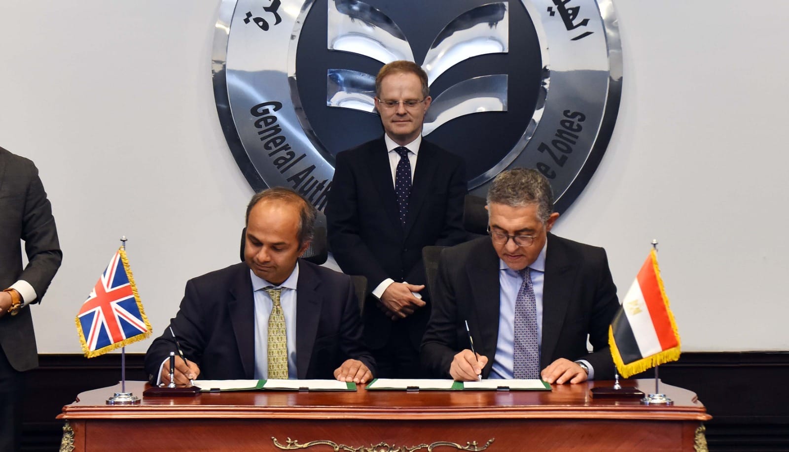 وقع حسام هيبة، الرئيس التنفيذي للهيئة العامة للاستثمار والمناطق الحرة، وتيم ريد، رئيس هيئة ضمان اعتمادات التصدير التابعة للخارجية البريطانية، مذكرة تفاهم لتعزيز العلاقات الاستثمارية والتجارية الثنائية بين مصر وبريطانيا.