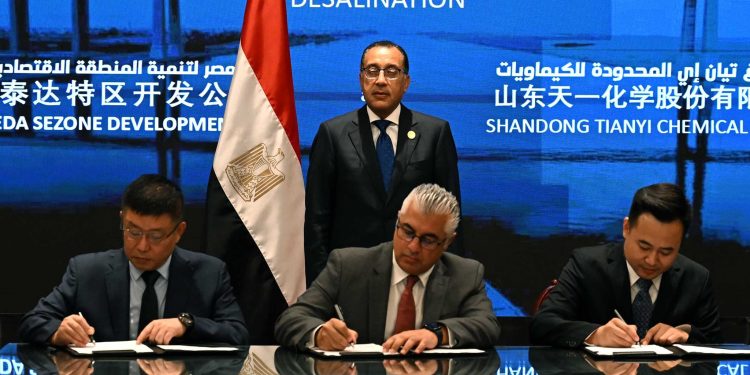 ويتضمن الاتفاق الإطاري كذلك توقيع عقد حق انتفاع بمساحة أرض قدرها 80 ألف متر مربع، لإقامة مصنع إنتاج خام البروم بجوار محطة تحلية مياه البحر بين كل من وليد جمال الدين، رئيس الهيئة العامة للمنطقة الاقتصادية لقناة السويس، وMaoan Lee، رئيس شركة “شاندونج تيان” أي للكيماويات.