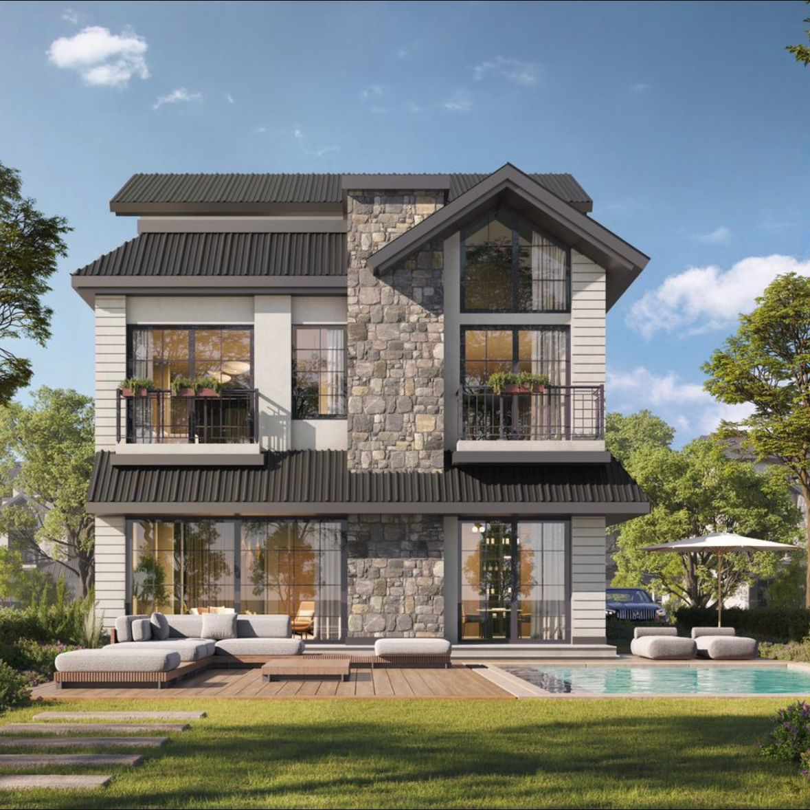 ولخلق بيئة متوازنة ومريحة، تم تخصيص 13% فقط من مساحة المشروع للبناء، فى حين تم تخصيص باقى المساحة للمناظر الطبيعية والمساحات الخضراء، وتم تصميم كل فيلا بعناية فائقة مع مراعاة كافة التفاصيل مما يجعل الحياة فى هذا المكان مزيجًا مثاليًا بين الرفاهية والراحة والخصوصية.