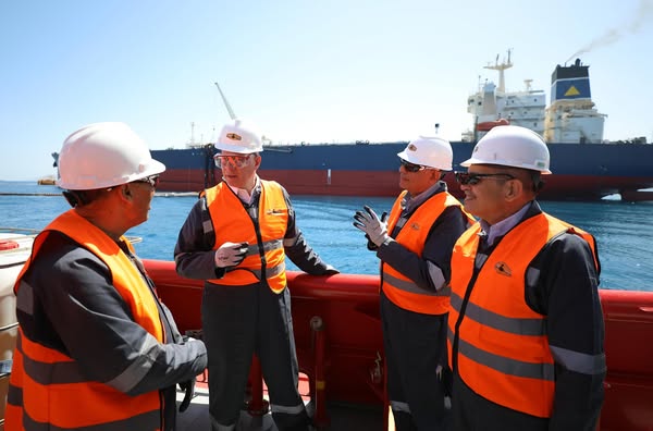 وقام الوزير ومرافقوه بجولة بحرية تفقد خلالها الرصيف البحرى ومراسى استقبال الزيت الخام والمنتجات البترولية وسفينة التغييز الحالية الموجودة بالميناء خلال استقبالها ناقلة غاز مستورد استعدادا لتغييزه وضخه في الشبكة القومية للغازات الطبيعية.