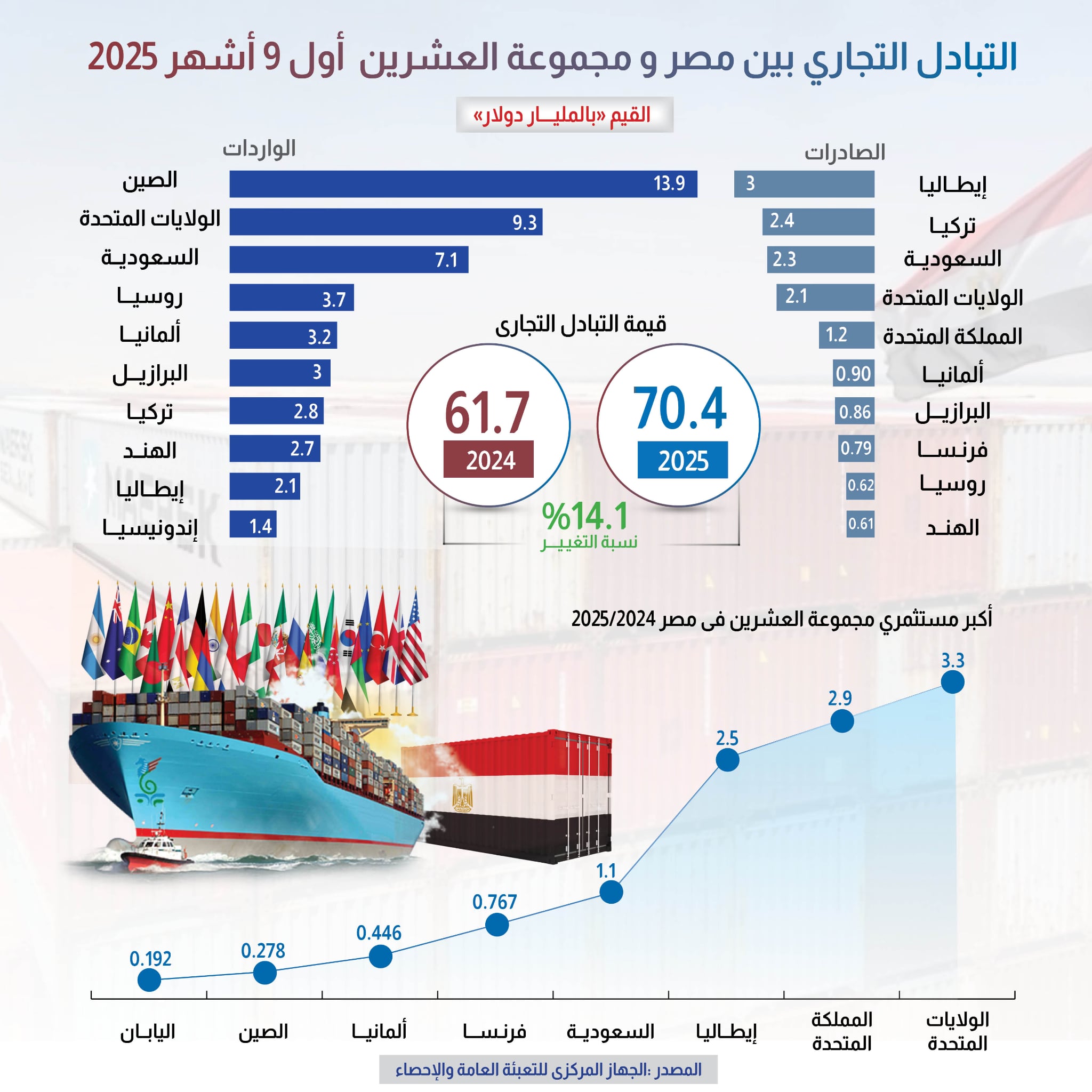 التبادل التجاري بين مصر ومجموعة العشرين أول 9 أشهر 2025